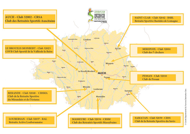 Carte des clubs du Gers